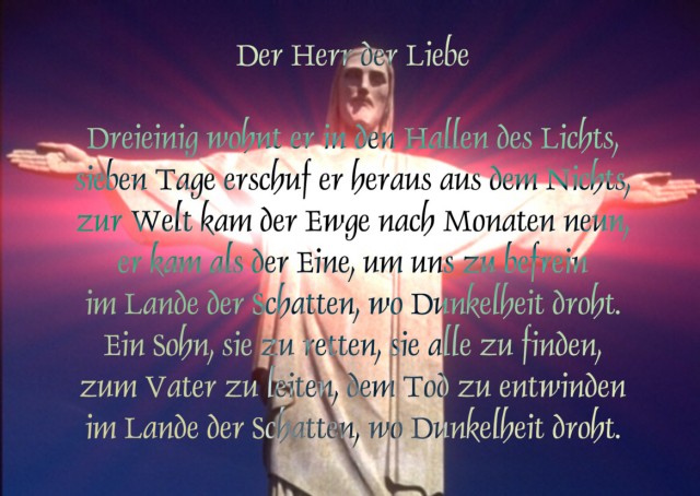 Postkarte 50 Cent pro Karte + Versandkosten! Dieses Motiv ist auch als Poster in Din A2 mit dem Originaltext “Der Herr der Liebe” erhältlich. Preis: 5 Euro + Versandkosten.